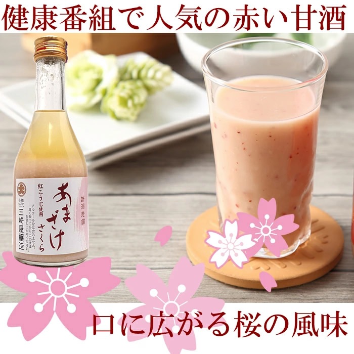 (終売)甘酒 あまざけ 飲み比べセット 310g 5本 三崎屋醸造 ストレート2本 桜2本 生姜1本 米と米麹だけ 砂糖不使用 ノンアルコール