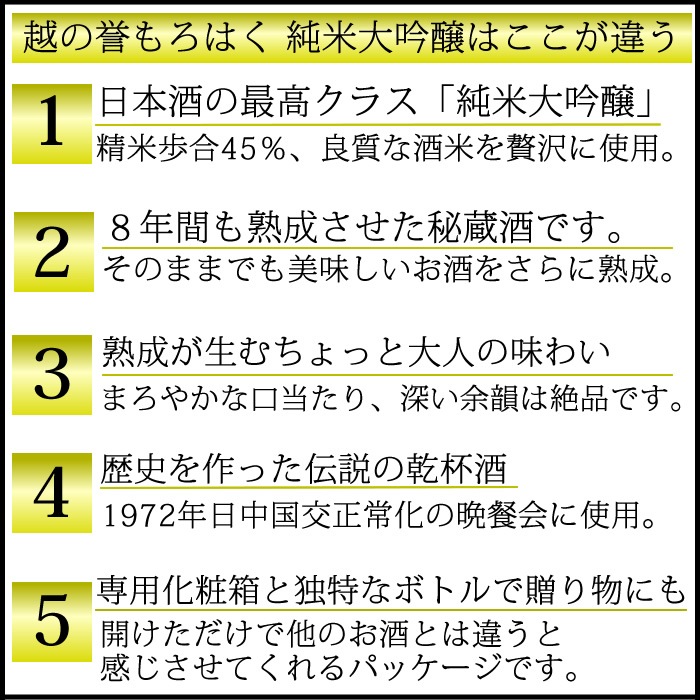 越の誉 純米大吟醸 秘蔵古酒酒 もろはく 750ml
