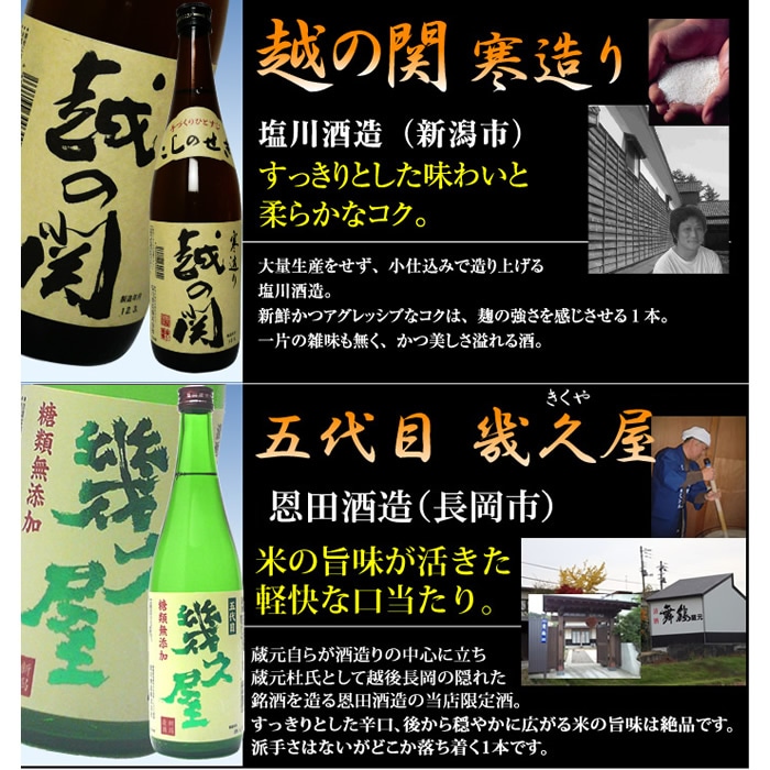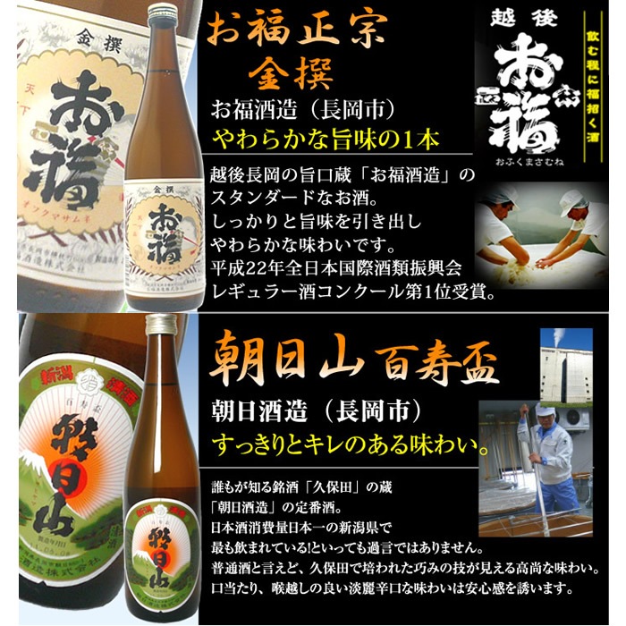 日本酒 飲み比べセット 720ml×6本 四合瓶(朝日山、福扇、幾久屋、雪しずくの里、越の関、お福正宗)