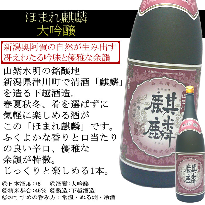 ほまれ麒麟大吟醸1800ml下越酒造日本酒大吟醸