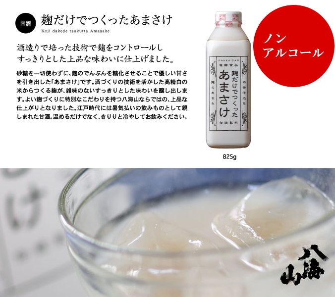 麹だけでつくった あまさけ825g×3本セット【要冷蔵品】(クール便代込み)八海醸造 甘酒「麹だけでつくったあまさけ」砂糖不使用 甘酒 米麹 砂糖不使用 ノンアルコール(クール便代込み)八海山