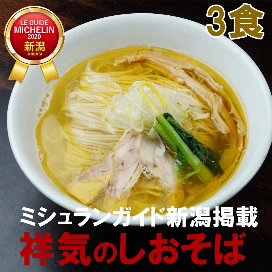 麺の風 祥気 しおそば3食 新潟ミシュラン掲載店の人気ラーメン店「麺の風 祥気」 鶏の旨味を知り尽くした店主が作る黄金に輝く超淡麗スープ 【産地直送】【冷凍】