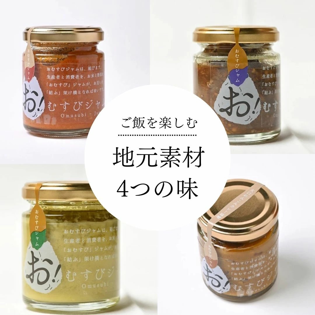 おむすびジャム4本セット SUZU ご飯のお供 おかず 「玄米トマト味噌 」「巾着ナスジンジャー」「かぐら南蛮ニンニク」「大口レンコンカレー味噌」調味料 新潟県 ソース おにぎり おむすび ごはん 長岡市 新潟県