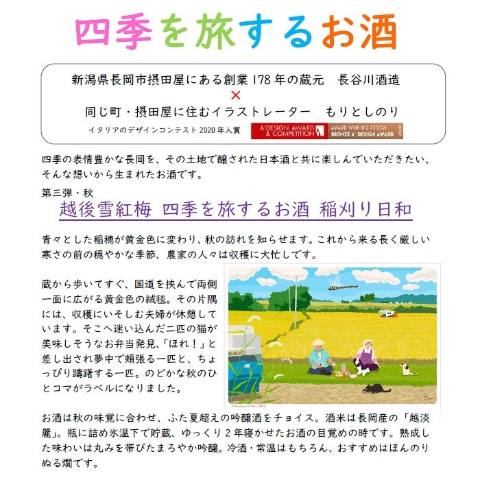 (秋限定)日本酒 秋 越後雪紅梅 四季を旅するお酒 稲刈り日和 吟醸酒 720ml 長谷川酒造 長岡 お土産 イラストレーター もりとしのり氏と長谷川酒造コラボ商品