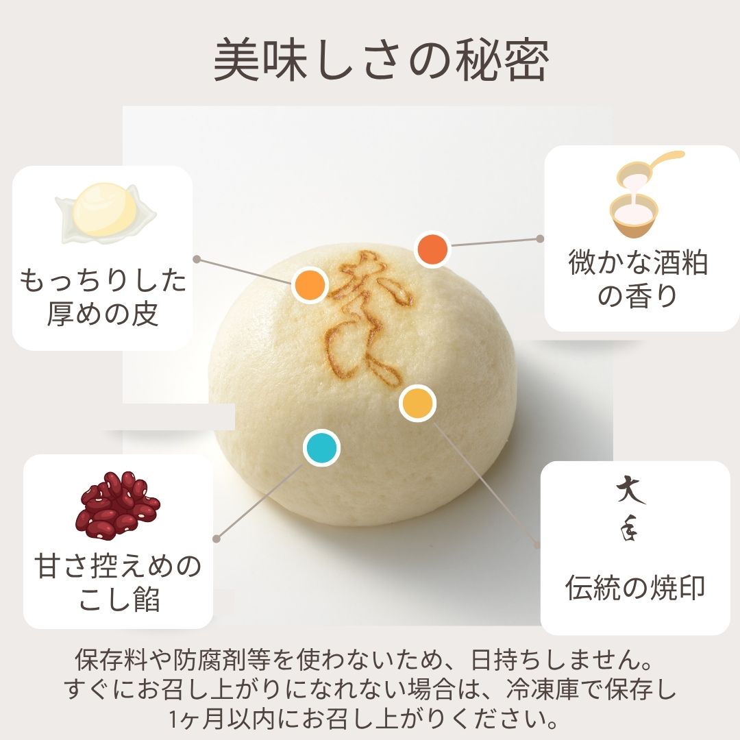 ■大手饅頭は保存料や防腐剤等を使わない、昔ながらの製法のため、日持ちがしません。